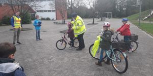 Am 25.10.2017 fand eine Fahrradkontrolle für unsere Kinder statt. Die Polizeikommissarin Andrea Meiners und der Praktikant Brian Weers haben die Fahrräder und die Helme auf Verkehrssicherheit überprüft.